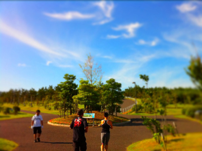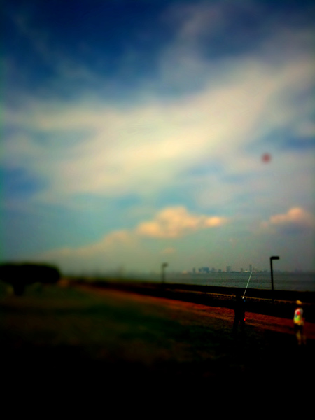 風の向き、境川に反射する光、三番瀬の小さな波、遠くに霞む幕張、海に浮かぶ雲。それら全てが何かを語りかけているようで思わず足を止めてしまいます。釣り人が波打ち際に立ち釣り糸をたらしていましたが、そこに裸足で立っていたらどんなに気持ちがいいだろうなぁ、境川を川上から河口までボートで移動したらどんなに清々しいか、温めのお風呂のあとのビールは美味いだろうな、水辺というテーマでBLOGかなぁ...。まぁ、いろんなことを考えながら忘れています。でも、一週間に一回はこんな時間帯を持つ楽しみも必要ですね。合流してママボリンケンと、お互いの調子確認しながらスポーツドリンクをグビグビ。...毒素を抜くためには明日も走らないとね。