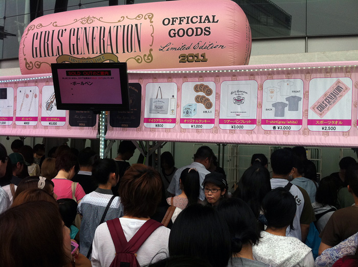 ダフ屋っているんですね。QRコード以外のチケット(従来の紙のチケット)を集めているのかな?その横で「チケット求む」と書いた女性たちが訴えるような目をしていたのが対照的でした。14万人のチケットに45万人が応募したとTVで報道されていたけど、9300円のチケット+グッズ(5000円)で一人14300円。14万人で20億の売上。巨大なビジネスなんですね。明日も楽しみにしている私なんぞは、その巨大なビジネスに軽々と飲み込まれているんですけどね。そんなヨタ話は置いておいて、パリ公演を経たSNSDって、いったいどんな感じになっているのだろうか?ウフフ、ますます楽しみです。